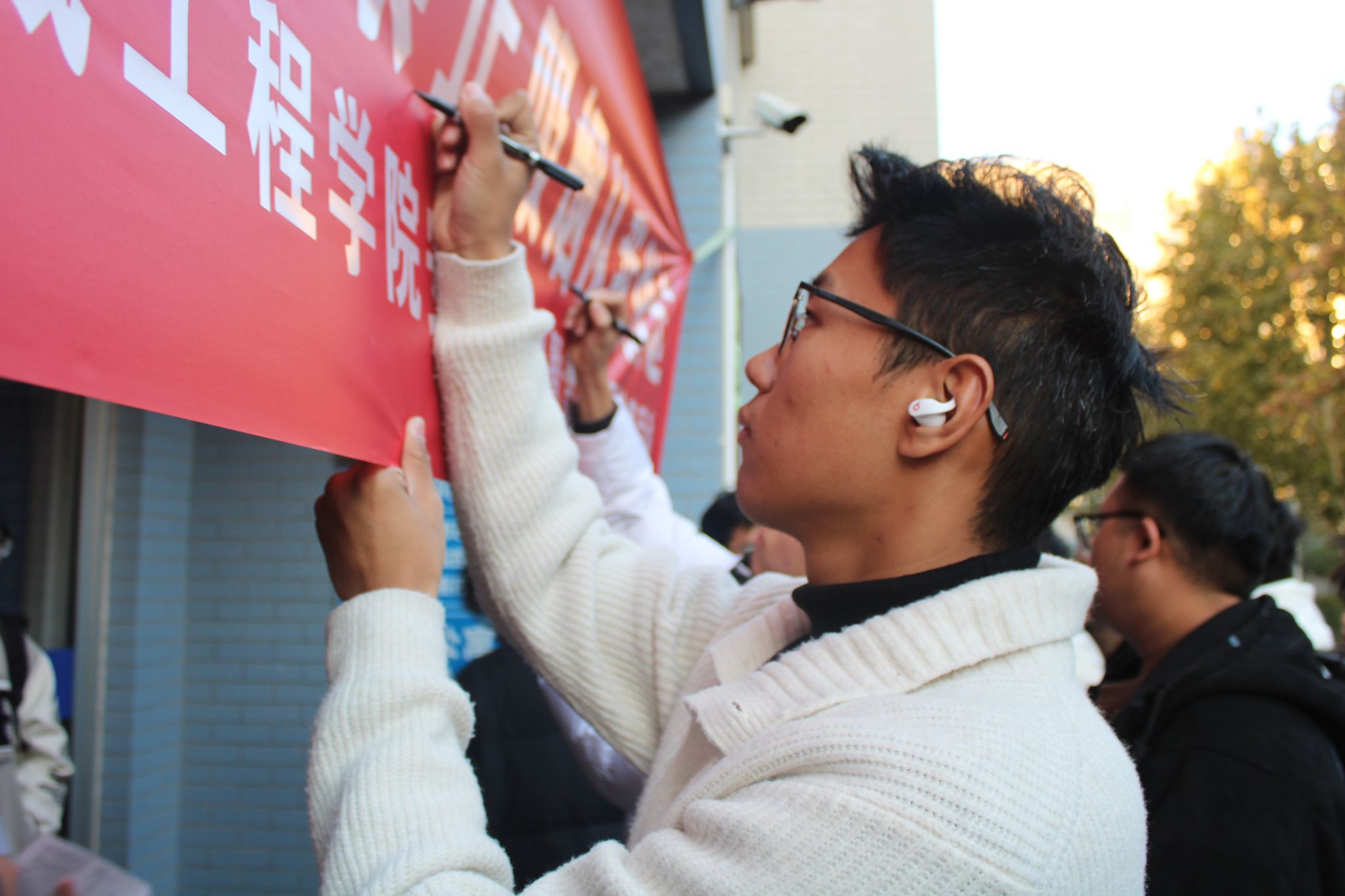 随后,孙成政就学生公寓安全问题做进一步强调,吸烟有害健康已成为人民的共识,宿舍是同学们生活学习的场所,宿舍内吸烟具有很多的潜在危险,不仅危害自己和宿舍内其他人的生命财产安全,而且会危害宿舍楼内其他同学的安全,同学们应以学习为主,应从自我做起,自觉远离香烟,养成良好的生活方惯,给身边的同学创造一个安全、健康、文明的环境。最后,师生一起在文明宿舍横幅上签名承诺。