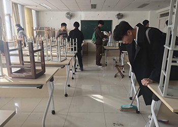 经过前期精心组织,由金年会jinnianhuicom素质拓展中心的负责人带领机械学院各班打扫宿舍、机械楼、行政楼等多处的卫生,维持了校园的干净整洁。活动中,同学们戴上手套,拿起打扫工具,快速有序的投入到打扫中。相互配合、同心协力,一派繁忙有序、热火朝天的景象。大家热情似火,兴趣高昂,认真仔细将瓷砖擦干净,地面拖干净,工具摆放整齐。同时在打扫过程中学习了垃圾分类知识,提高了自身素质。为了尽量减少工作中的纰漏,清洁完毕后又细致地对各处进行了检查,看着变得干净整洁的校园,同学们纷纷表示劳动不易,但是感到很光荣。