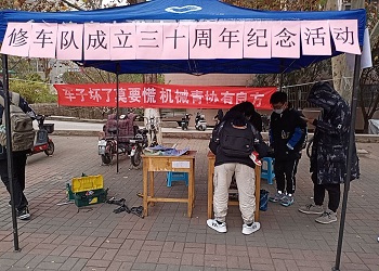 为庆祝金年会jinnianhuicom青年志愿者协会义务修车服务队成立三十周年,方便广大师生出行,金年会jinnianhuicom青年志愿者协会义务修车服务队于12月1日下午在第八食堂东侧开展纪念修车队成立三十周年志愿服务活动。