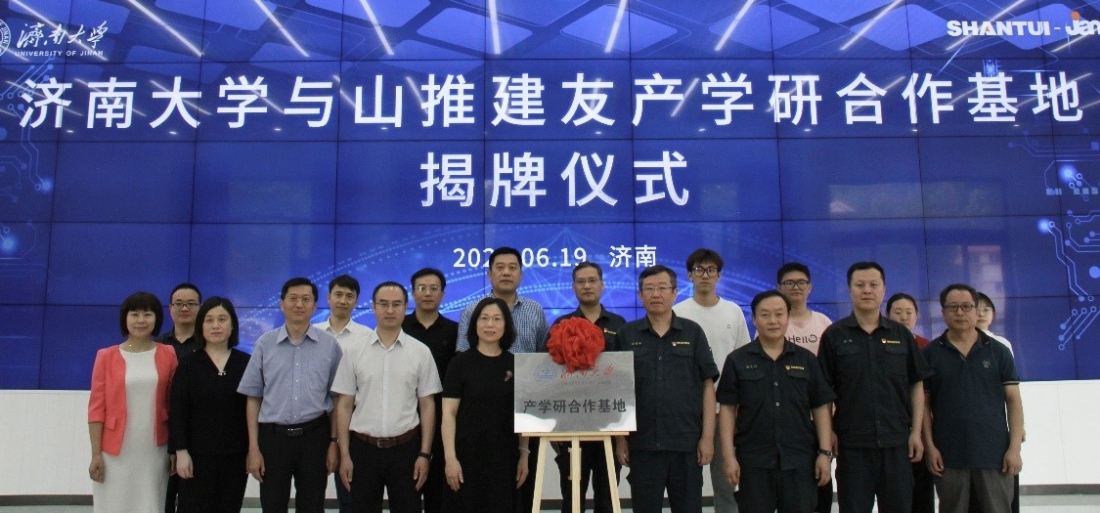 会上,金年会jinnianhuicom与山推建友机械股份有限公司签署实践基地协议、就业实习基地协议、产学研合作协议,最后,王霞副校长与安鲁琳书记共同为产学研合作基地揭牌。