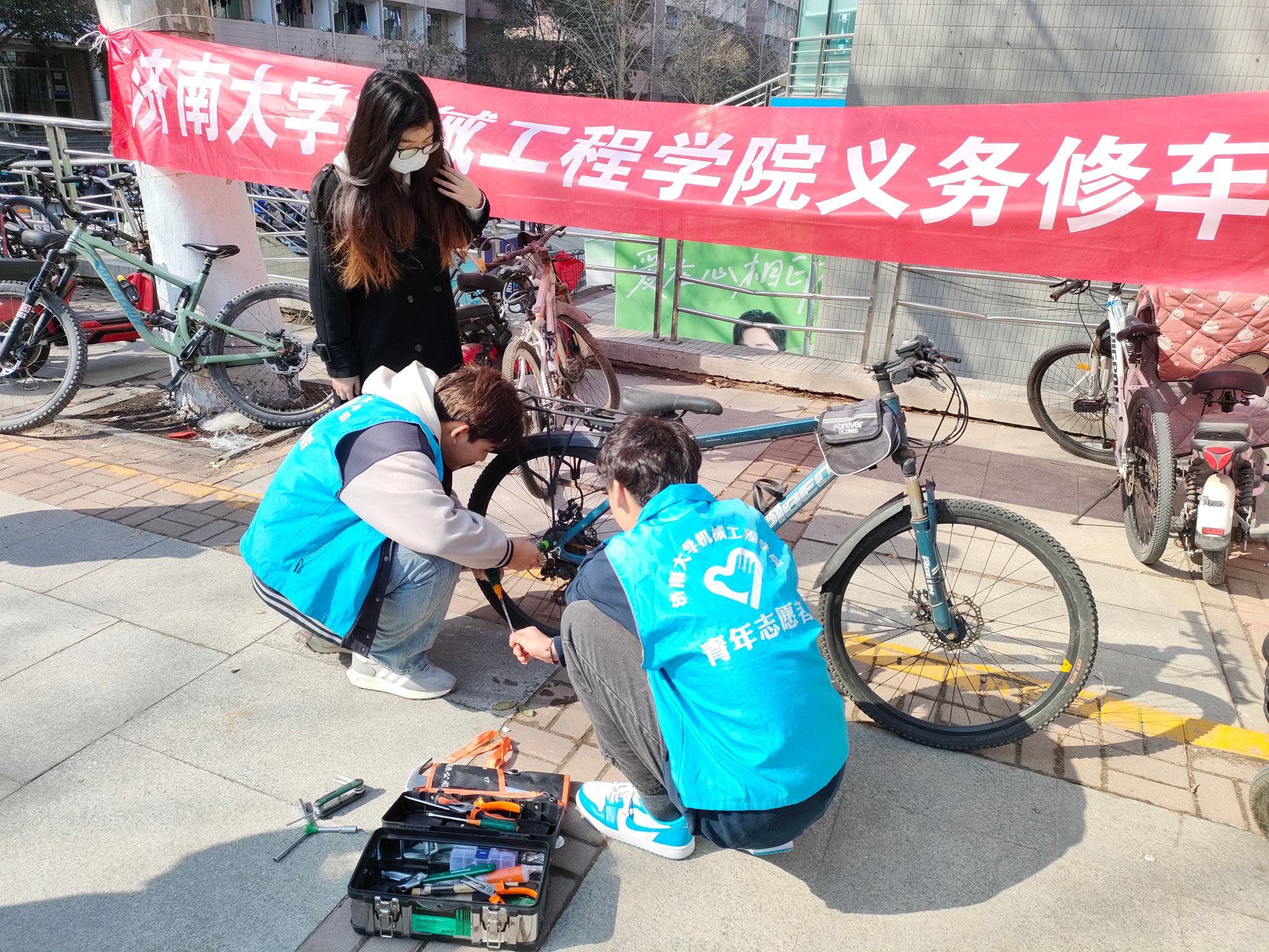 金年会jinnianhuicom义务修车服务队志愿服务时间长、范围广、队伍大。面对师生对电动车维修的需求增大,修车队不断发展进步,于2020年下半年开展电动车修理服务,并组织相应的修车培训工作,为日后义务修车服务的进一步发展奠定了坚实基础。